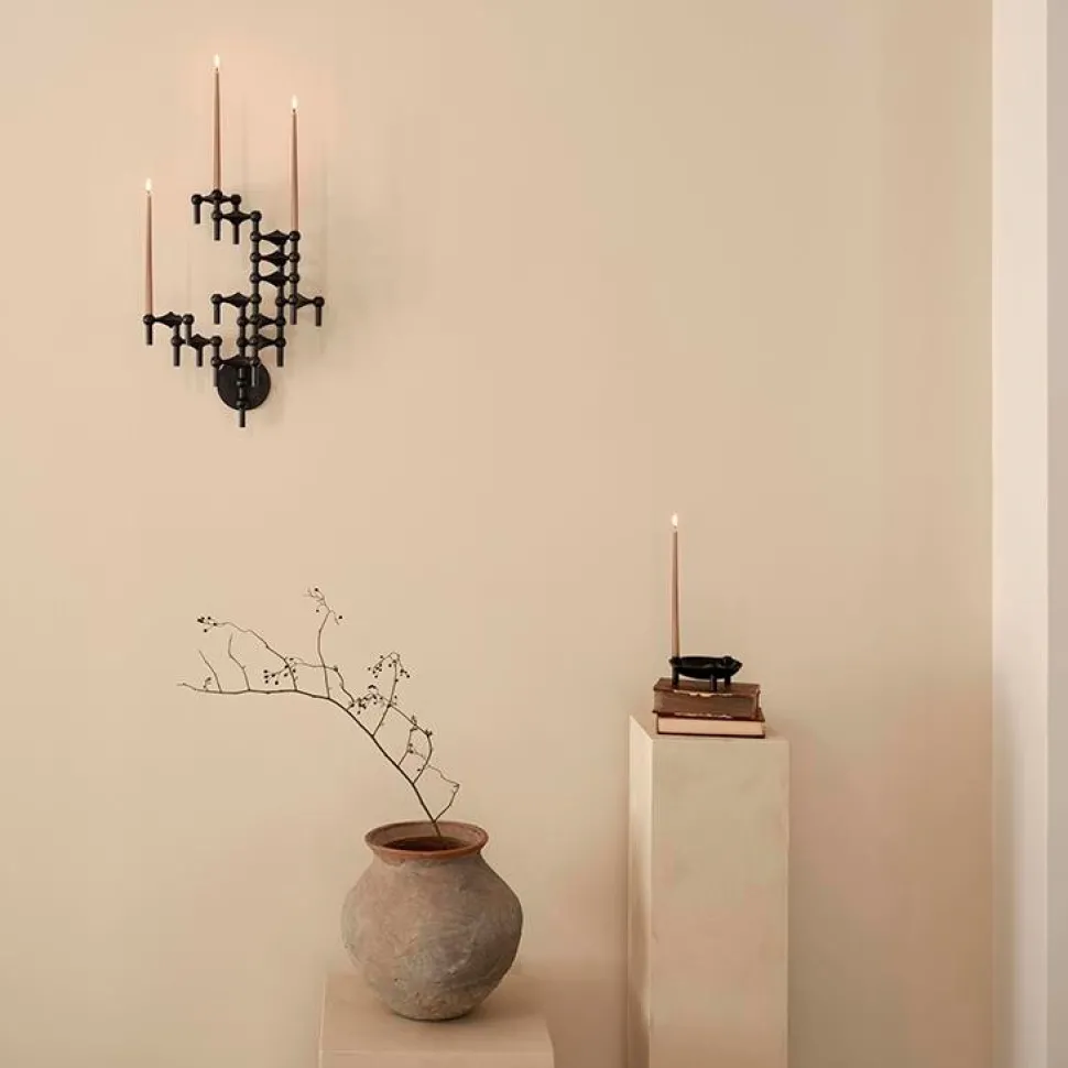 Uanset om ønsket er at skabe en dramatisk lysinstallation eller et diskret designelement, er vægophænget det ideelle udgangspunkt – et statement-piece til det moderne hjem. Anbefalingen er maksimalt at placere 25 og mindst 5 lysestager på vægophænget, når vægskulpturen skabes, for at opnå det bedste visuelle grundlag og en harmonisk balance i udtrykket.