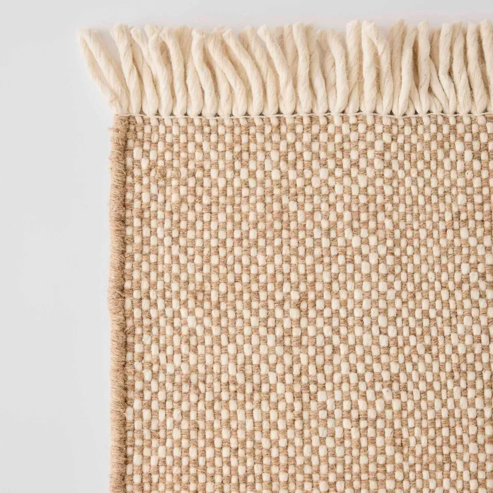 Håndvævet tæppe i 100% ufarvet uld med et naturligt og levende udtryk. Tæppet er unikt, da både farve og struktur varierer en smule alt efter uldens oprindelse – en del af charmen ved det ægte håndværk. De bløde nuancer i beige og hvid giver et tidløst og harmonisk udtryk, der er ideel til både stue og soveværelse. Desuden har tæppet en tæt og slidstærk kvalitet, som sikrer lang holdbarhed og et luksuriøst udtryk.