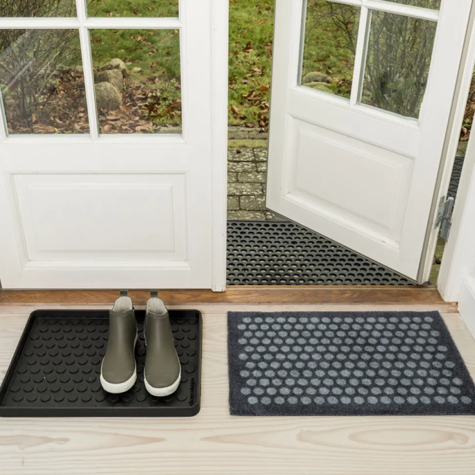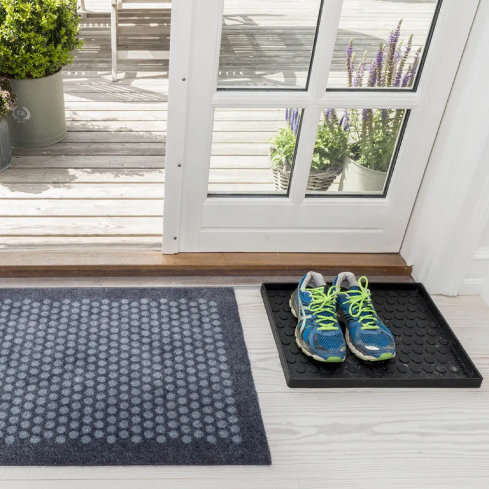 Praktisk og smart skobakke i 60% genbrugsgummi. Den funktionelle Dot skobakke er perfekt i gangen eller entreen, hvor du og din familie kan sætte jeres sko. Den smarte bakke beskytter gulvet mod snavs og sten fra skoene og er desuden et fint og enkelt alternativ til den klassiske skohylde.