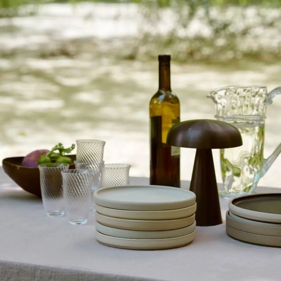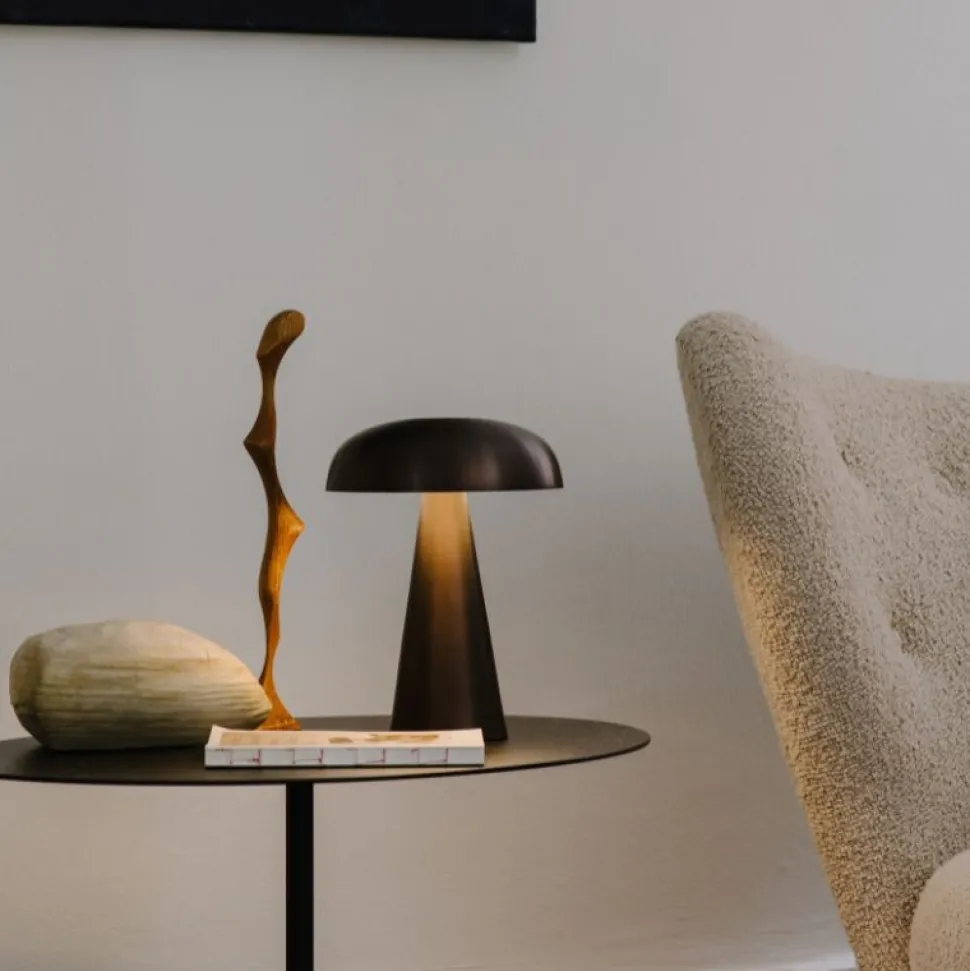 Match belysning og stemning med Como, en bærbar bordlampe designet af Space Copenhagen. Fremstillet af anodiseret aluminium, spidser Comos robuste base op mod en blødt buet, svampeformet skygge. Como kan fås i seks forskellige udgaver: Black, Brass, Bronzed, Red Brown, Stone Blue og Aluminium.