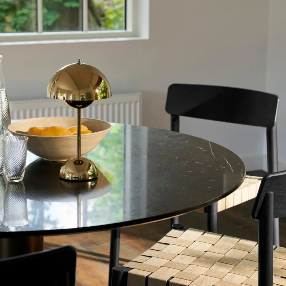 VP9-bordlampen repræsenterer en minutiøs miniaturisering af det ikoniske Flowerpot-design, hvor formmæssig klarhed kombineres med funktionel intelligens. Den lette og trådløse konstruktion muliggør en fleksibel integration i skiftende rumlige kontekster, hvilket fremhæver lampens anvendelighed uden at kompromittere det æstetiske udtryk.