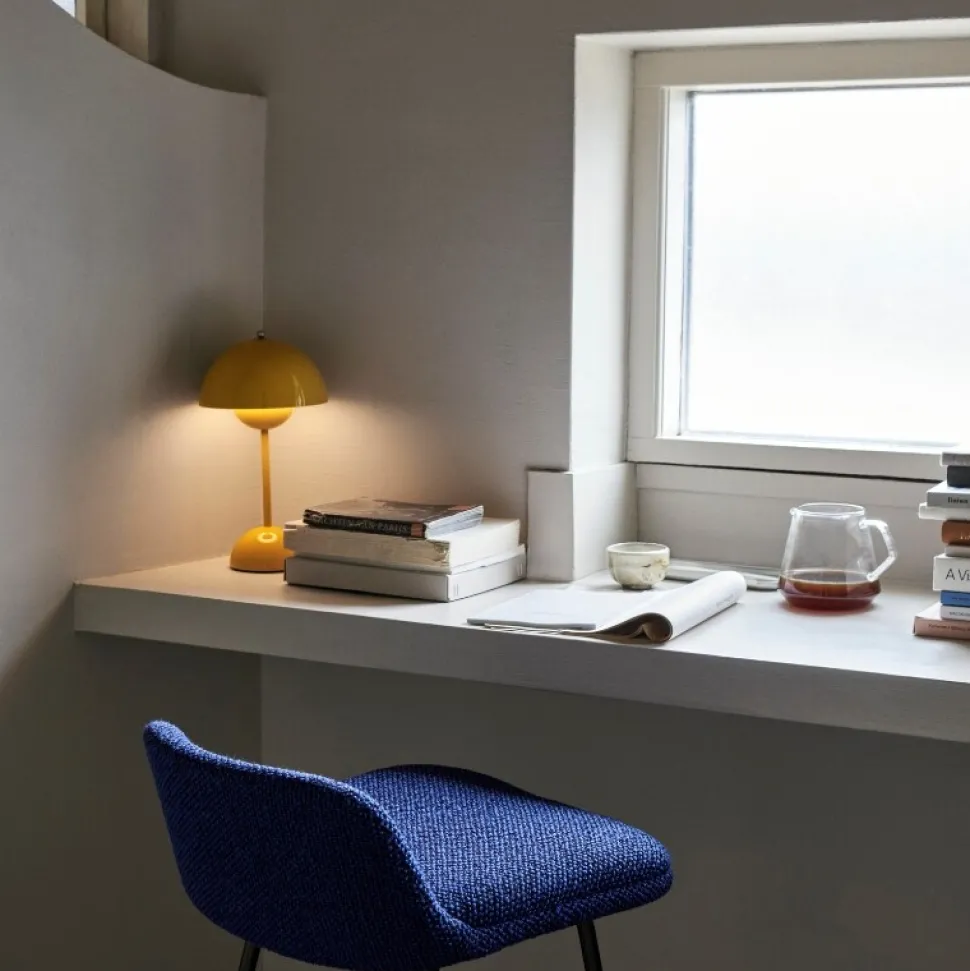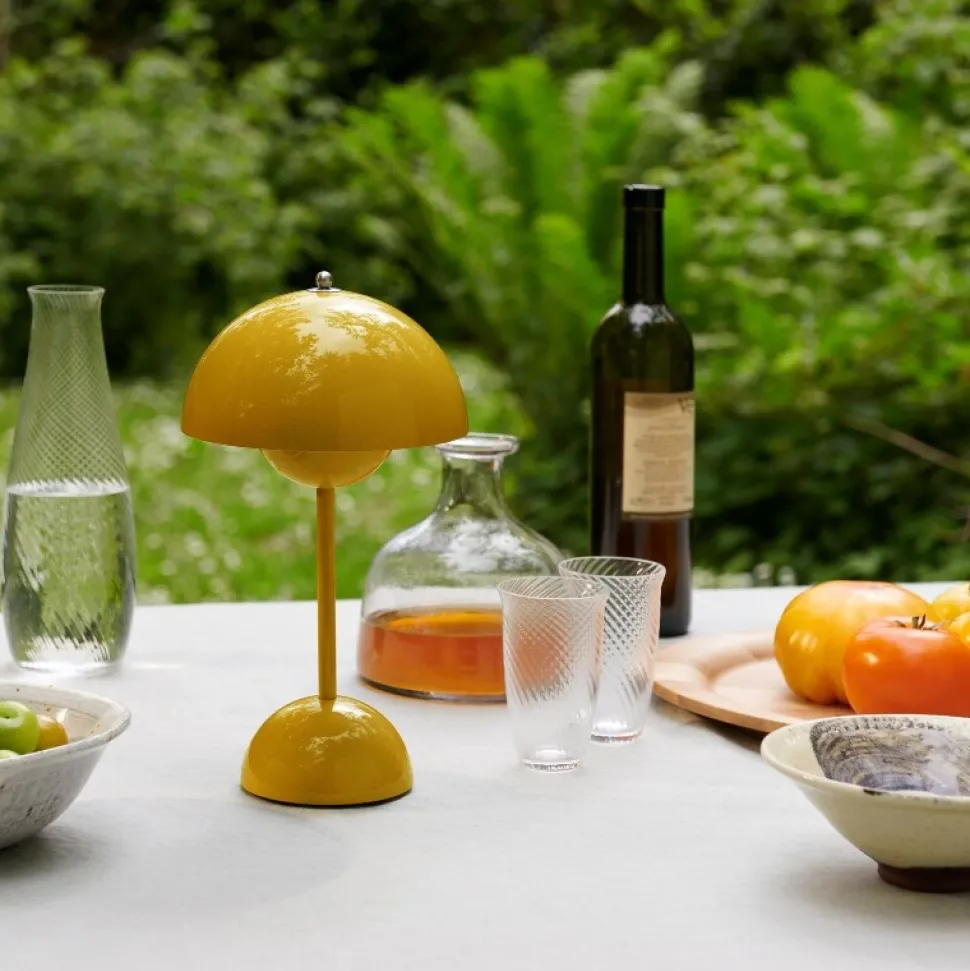 Seneste tilføjelse til den populære Flowerpot-serie er denne bærebare VP9. Lampen er designet med en berøringsdæmper på tre niveauer og er tilmed udstyret med et USB-opladerkabel. Bordlampen er designet af Verner Panton, som var en af de mest fremadrettede talenter i sin tid. Tankegangen bag designet var, at omfavne en mere åben, moderne mentalitet, som fremmede fred og harmoni – hvilket lampen afspejler.