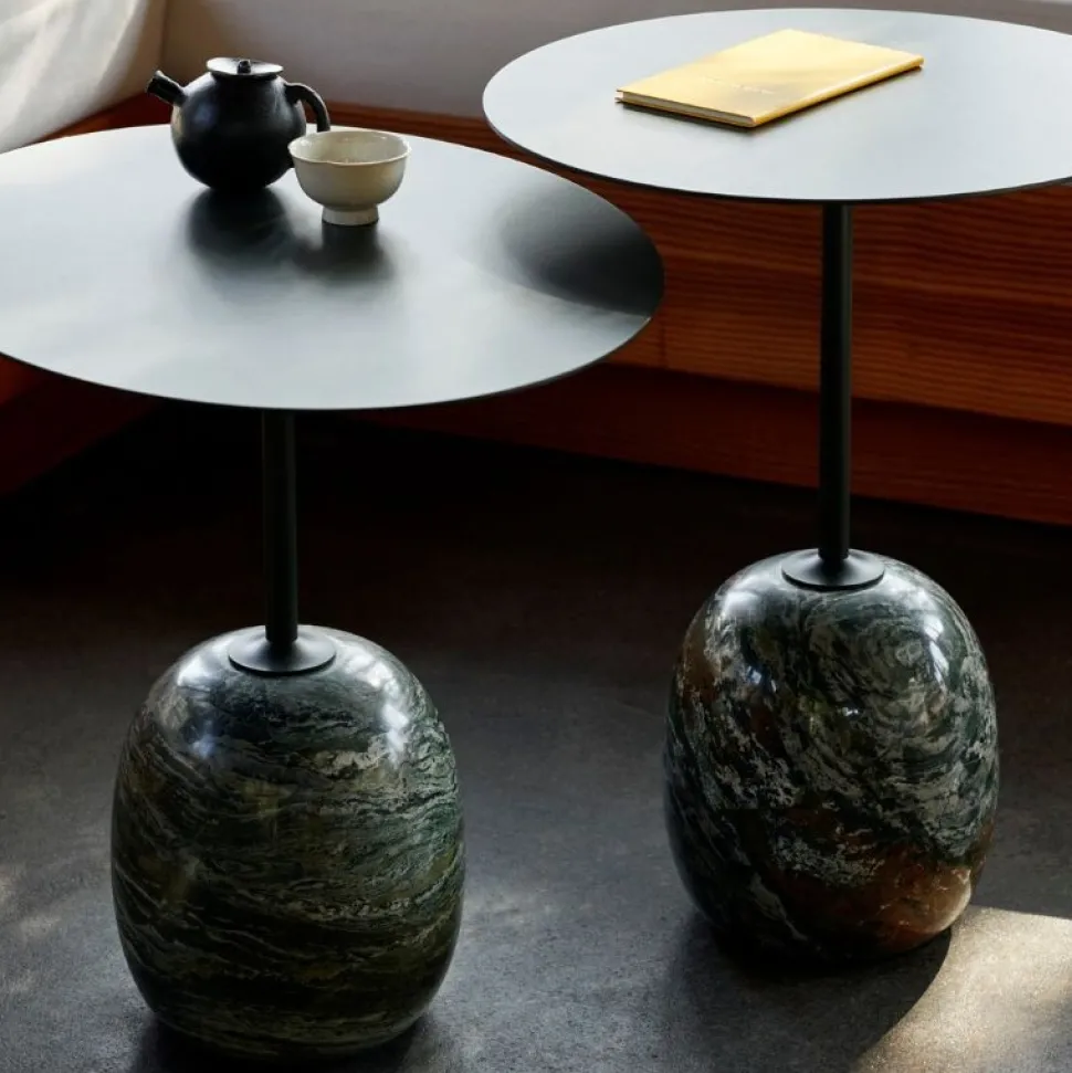 Materiale: Marmor fod med plade i pulverlakeret stål i farven Deep Green.