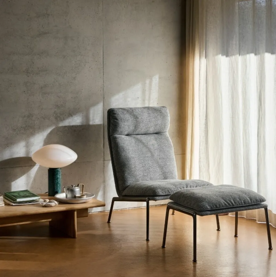 Muno-serien er betegnet med en ubesværet elegance, som indbegrebet af skandinaviske og italienske designprincipper. Muno loungestolen har en karakteristisk høj ryg og inviterer brugerne til at læne sig ind i stille øjeblikke med rigelig højde til at hvile hovedet. Den svage hældning af den skrånende base forbedrer stolens kropsholdning og giver en generel følelse af lethed.