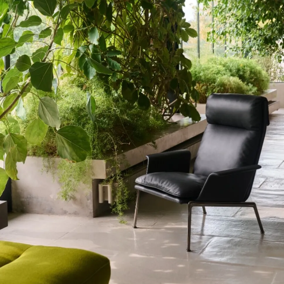 Muno-serien er betegnet med en ubesværet elegance, som indbegrebet af skandinaviske og italienske designprincipper. Muno loungestolen har en karakteristisk høj ryg og inviterer brugerne til at læne sig ind i stille øjeblikke med rigelig højde til at hvile hovedet. Den svage hældning af den skrånende base forbedrer stolens kropsholdning, mens armlæn fremhæver stolens generelle følelse af lethed.