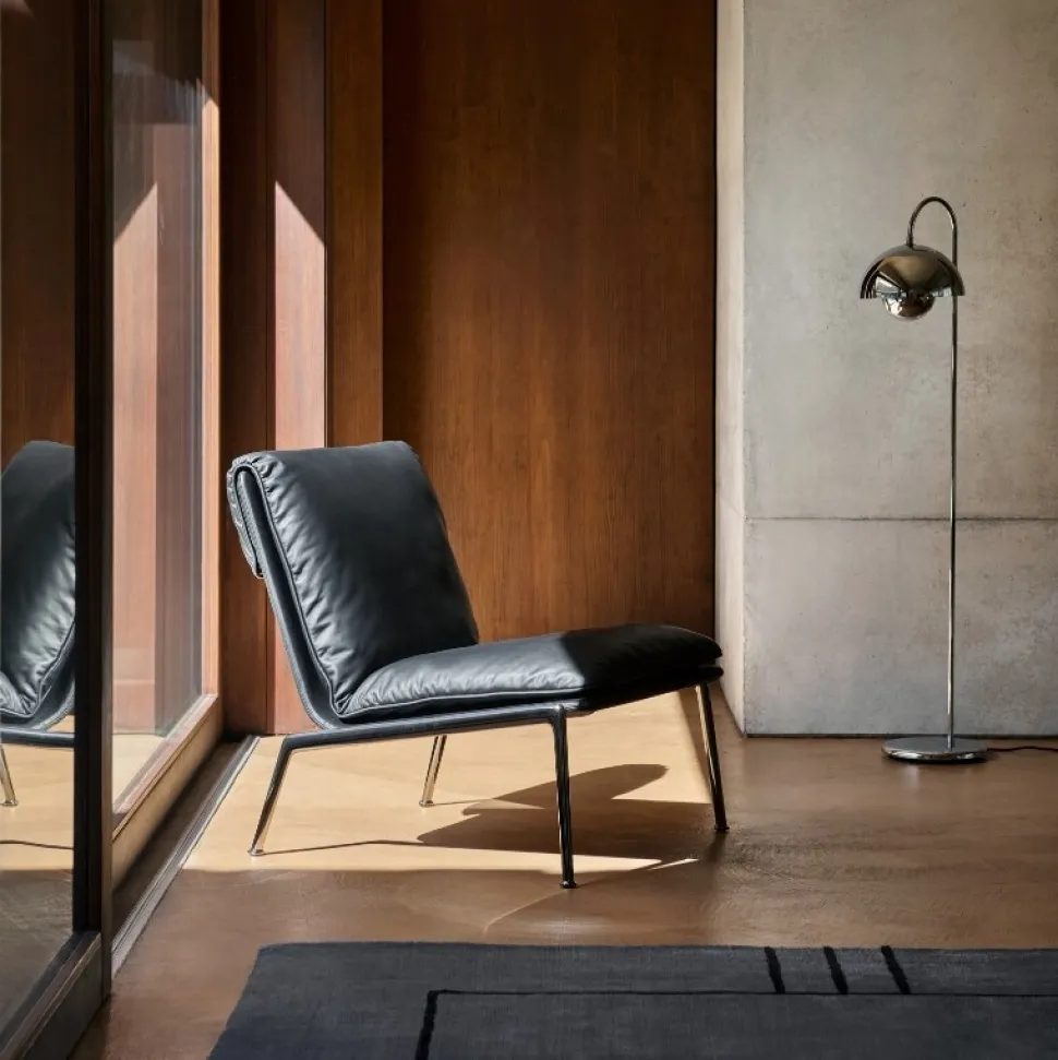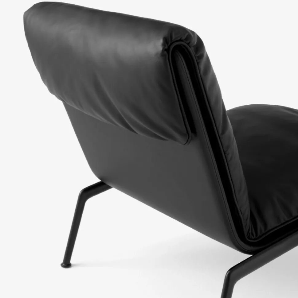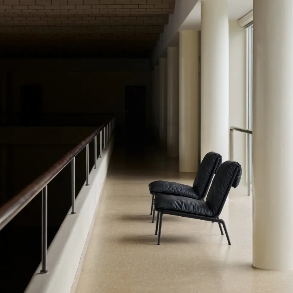 Kendetegnet ved sine plyspuder og slanke, støbte aluminiumsben, tilbyder Muno loungestolen den samme overbevisende oplevelse som sin højere modstykke i en mere kompakt form. Ved at have en enkelt hynde ser stolens sæde og ryglæn ud, som om den var draperet over stellet for at opnå et afslappet, men elegant udtryk.
