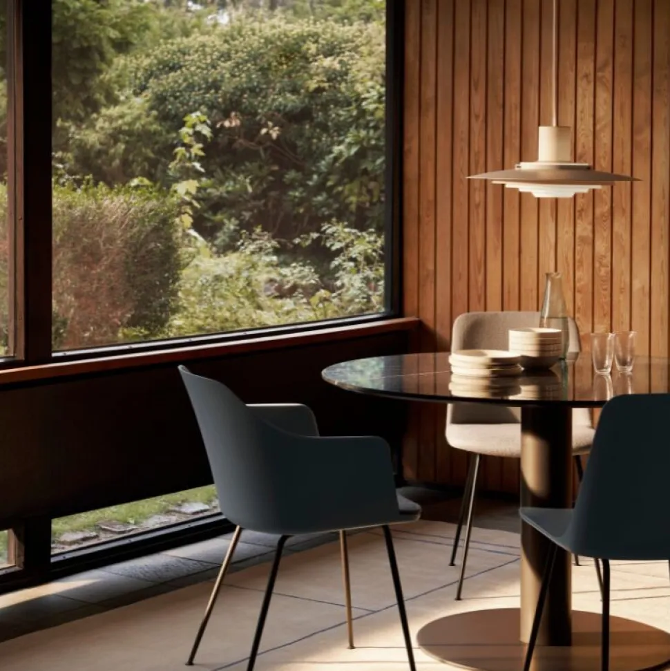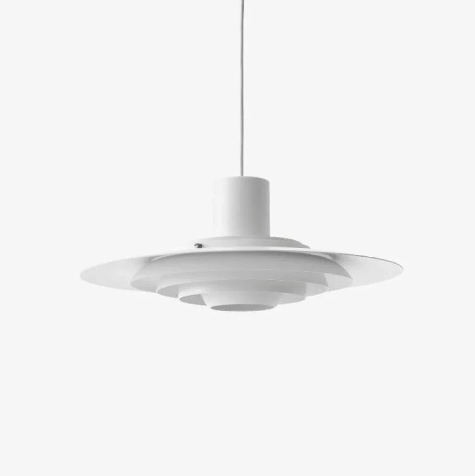 Oprindeligt udtænkt i 1963, fem koncentriske nuancer skaber gradueringer af kurver mod midten af lampen for at udsende et blødt, diffust lys. Den diskrete placering af nuancerne og den silkebløde aluminiumsfinish kulminerer i et sammenhængende udtryk, der er både ikonisk og medrivende.