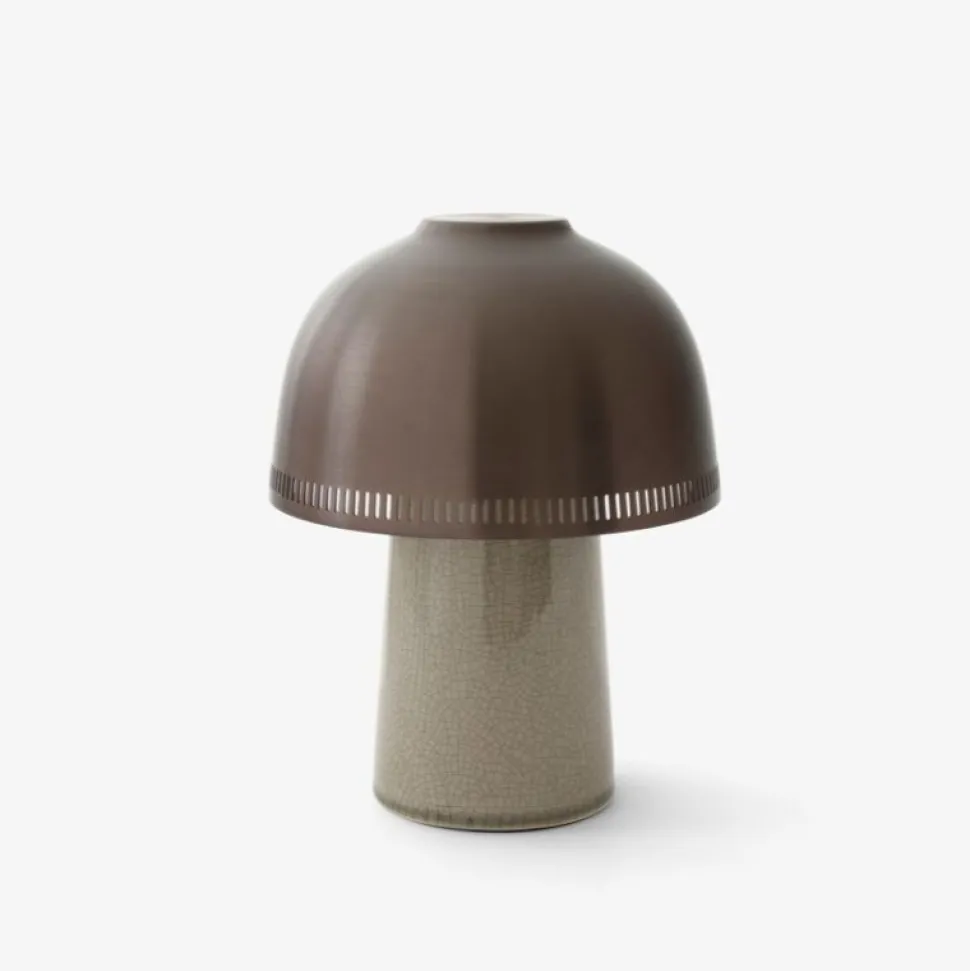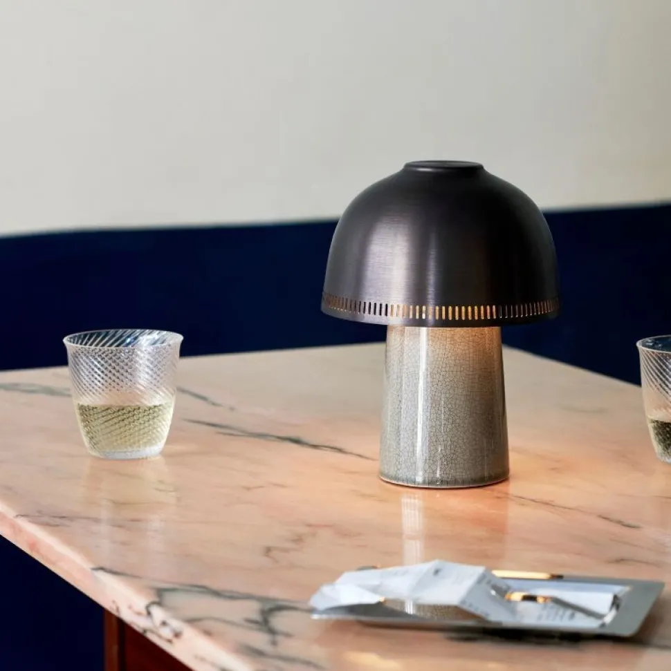 Opkaldt efter den traditionelle japanske keramikteknik, er Raku en kompakt lampe med betydelig tilstedeværelse. Lampen er inspireret af den ældgamle kunstform og har en håndformet keramisk base med en knitrende glasur, der varierer lidt i hvert eksemplar, hvilket tjener som en påmindelse om at nyde ufuldkommenhederne.