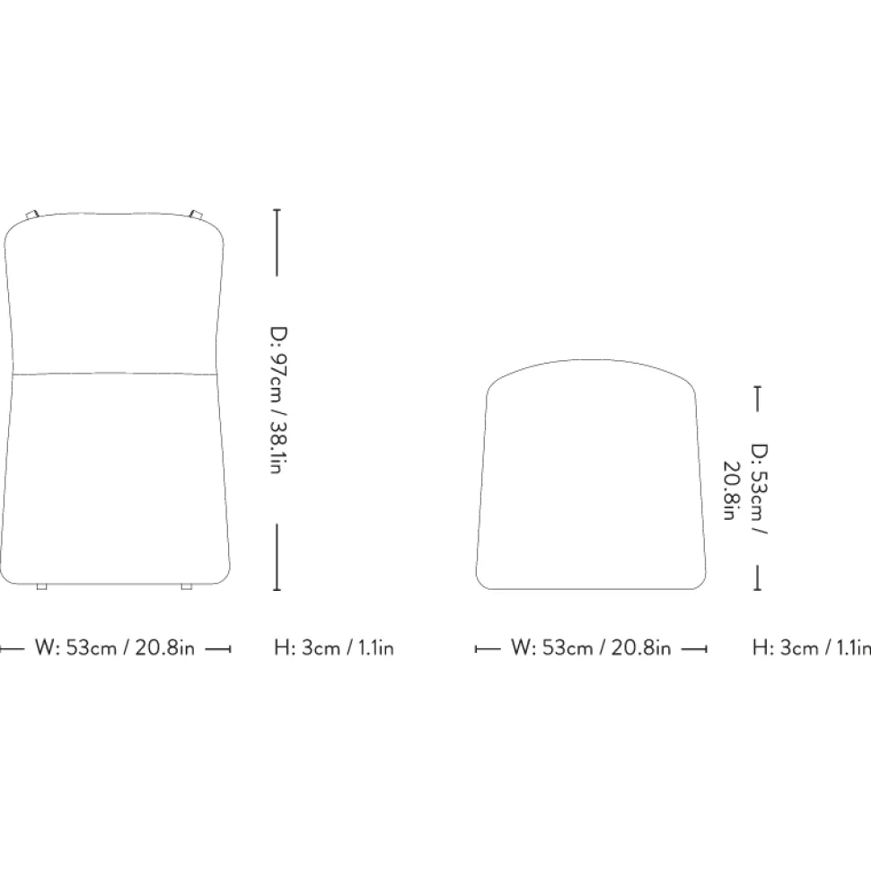 Thorvald hynderne tilføjer et ekstra lag af komfort til udendørskollektionen. Hynden passer til både SC100 og SC101 og er certificeret med OEKO Tex® 100 og Greenguard Gold. Det vandafvisende og pletfaste lærred er lavet af 50 % genbrugsakryl, 47 % akryl og 3 % polyester.