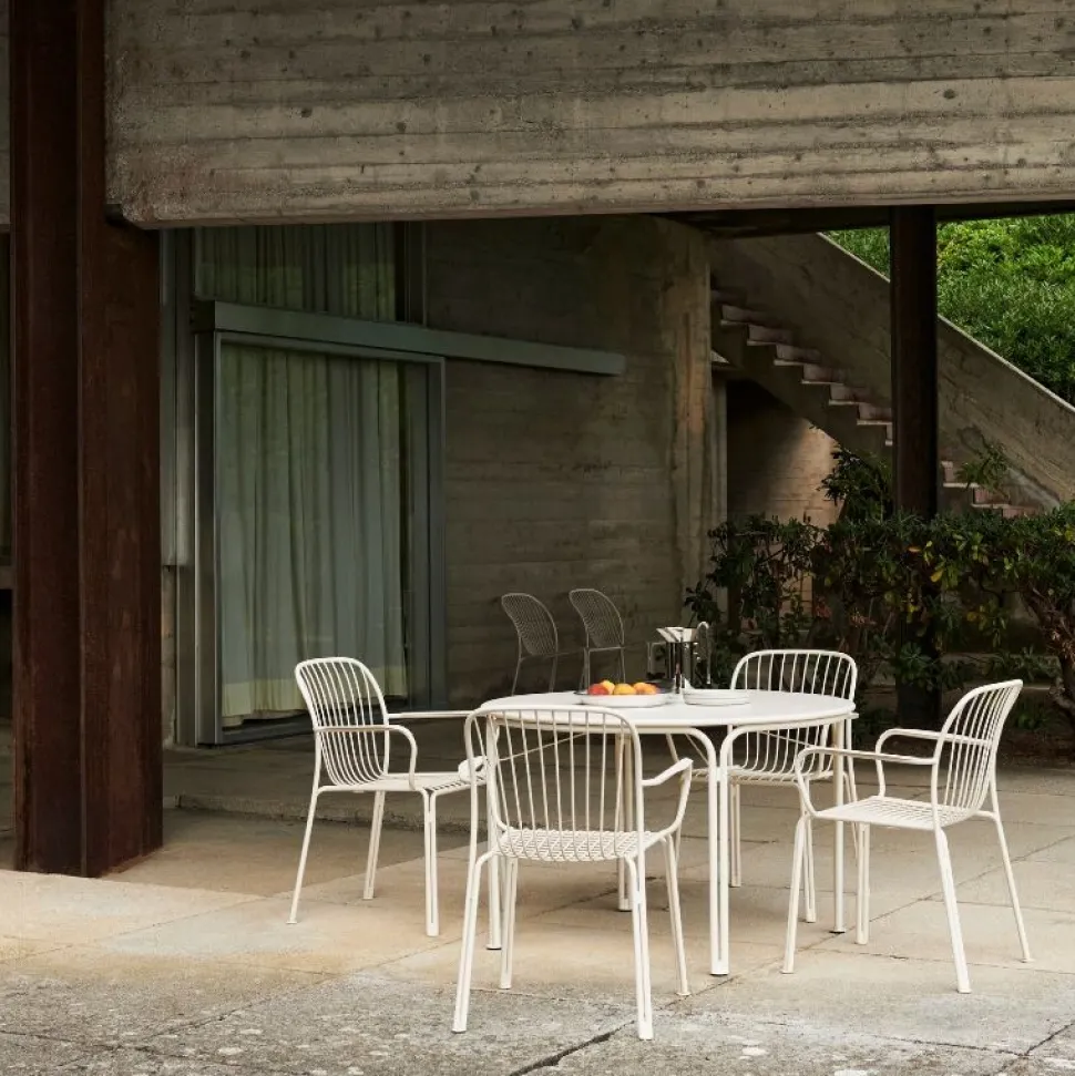 Elegant og lækker havestol, som blander friluftsliv med skulpturelle silhuetter. Gitteret i sæde og ryg giver et smukt samspil mellem lys og skygge. Stålstellet på den stabelbare stol sætter scenen for en elegant og alsidig havestol. Stolen kan forenes med en matchende hynde for størst mulig siddekomfort.