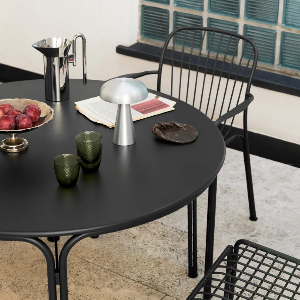 Smuk og moderne havebord. Thorvald kollektionen er inspireret af den Københavnske kunstner Bertel Thorvaldsen og det imponerende Thorvaldsens museum. Kollektionen omfatter en række borde, hvor dette smukke spisebord passer perfekt ind i haven eller på terrassen.
