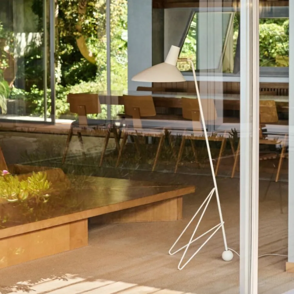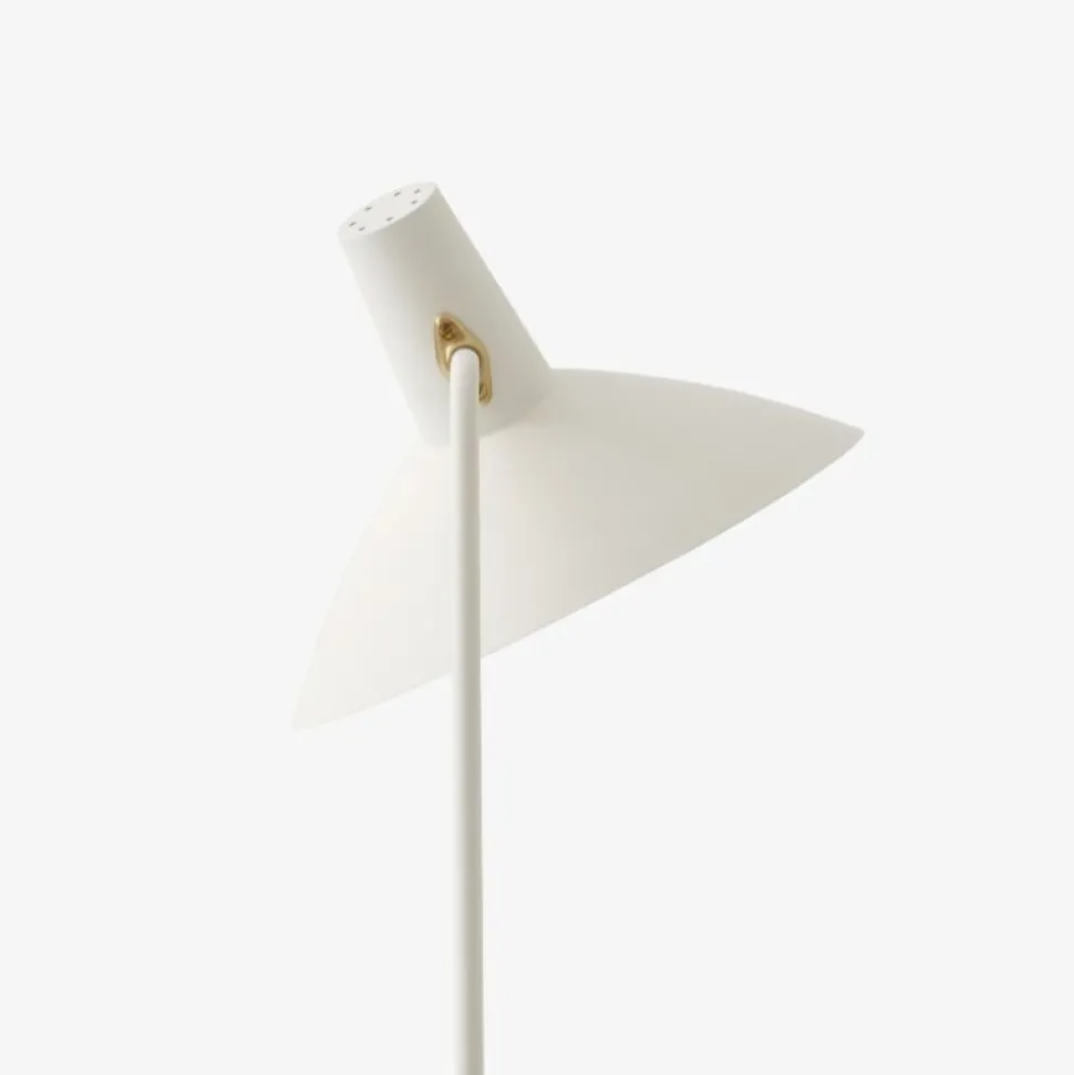 Tripod er en smuk gulvlampe bygget af lakeret stål. Tripod kommer med en drejefunktion i skærmen, som giver lampen en fremragende alsidighed. Serien viser en elegance og en unik evne til at passe ind i diverse miljøer og rum.