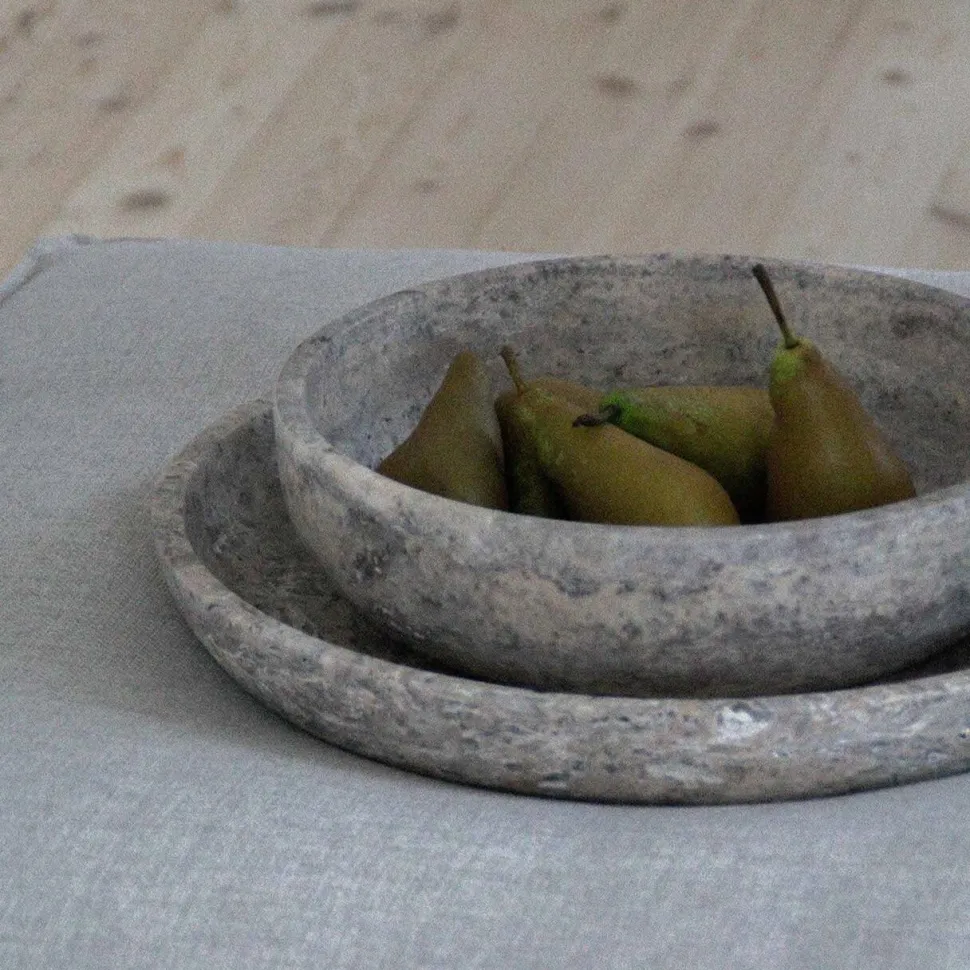 Qua materialevalget er hver skål unik, idet alle natursten er forskellige. Dét betyder, at der vil forekomme variationer i mønstre og farvenuance, som alt naturskabt. Stenen er behandlet med omhu, idet den ønskes bevaret så naturtro som muligt.