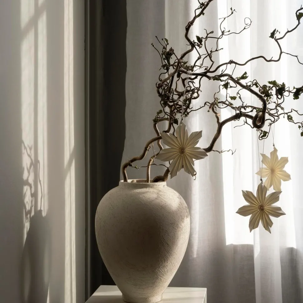 Små og detaljerede papirstjerner, der i al sin enkelthed er en fin indretningsdetalje. Stjernerne er omhyggeligt håndfoldet. Lad stjernerne pynte smukt på juletræet eller en gren for et stilrent udtryk. Desforuden er stjernerne ideelle som værtinde- eller adventsgave. Uanset anvendelse heraf skaber papirstjernerne en stemningsfuld atmosfære i boligindretningen.