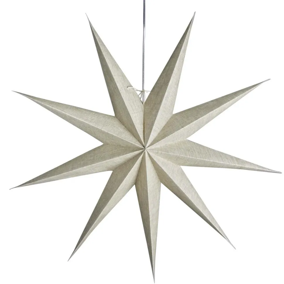Med sit enkle og naturlige udtryk forener stjernen klassisk julestemning med moderne skandinavisk design. Adventsstjernen er håndfoldet i papir beklædt med naturfarvet hør og har ni elegante spidser, der giver et varmt og roligt lys. Den taktile overflade og rene form skaber en stemning af ro og raffinement – ideel til et hjem med sans for æstetik og enkelhed.