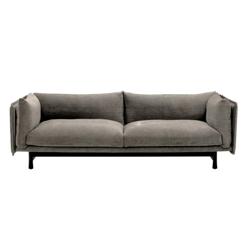 Robust og omsluttende ydre af polstrede paneler, der efterligner en drage og samtidig byder på et blødt, indbydende indre. Trærammen i sortbejdset eg og de tydelige kegleformede ben, forener design med imponerende snedkerdetaljer. Sofaen er yderligere beriget med en omhyggeligt skræddersyet æstetik samt de bløde ryg- og sidepuder, der blidt omslutter det behagelige og indbydende sæde.