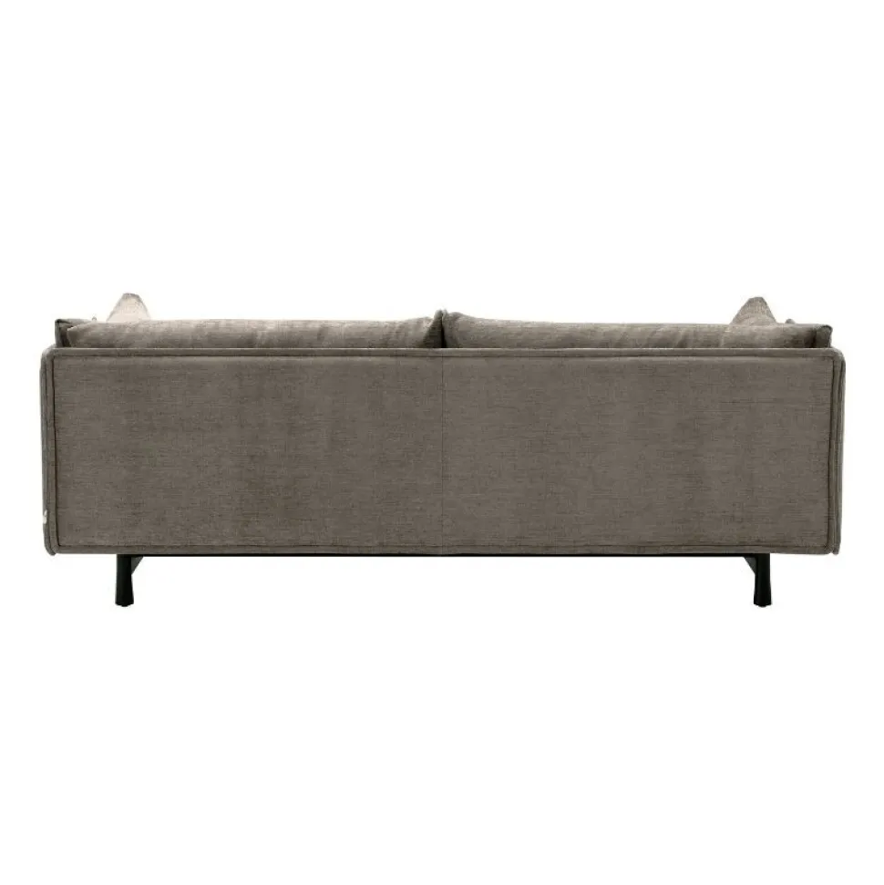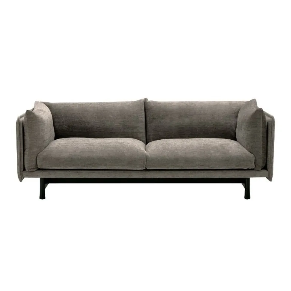 Robust og omsluttende ydre af polstrede paneler, der efterligner en drage og samtidig byder på et blødt, indbydende indre. Trærammen i sortbejdset eg og de tydelige kegleformede ben, forener design med imponerende snedkerdetaljer. Sofaen er yderligere beriget med en omhyggeligt skræddersyet æstetik samt de bløde ryg- og sidepuder, der blidt omslutter det behagelige og indbydende sæde.