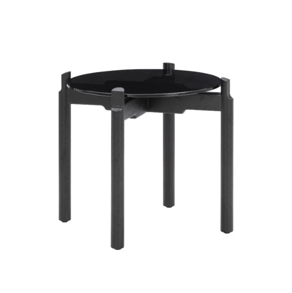 Notch-bordene fås i syv størrelser og former – der spænder over runde, firkantede og rektangulære borde. Designet af Gunther Pelgrims er kendetegnet ved en slående grafisk karakter. Den semi-transparente bordplade er lavet i sort glas med let affasede kanter og hviler oven på en ramme i sortbejdset eg med synlige årer, med bemærkelsesværdige møbelsnedkerdetaljer, der løfter designet yderligere.